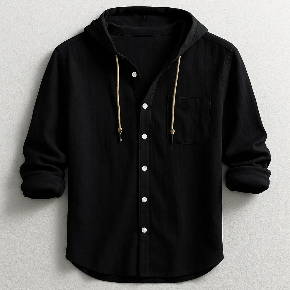 Hooded Button-Up Shirt – Lightweight Casual Long Sleeve Top for Daily Wear